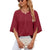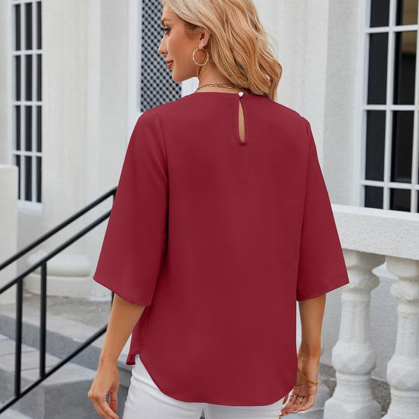 Summer Women Loose Chiffon Blouse Tops Round Neck 5 Points Sleeve Short Sleeve, Size: M(Wine Red)
