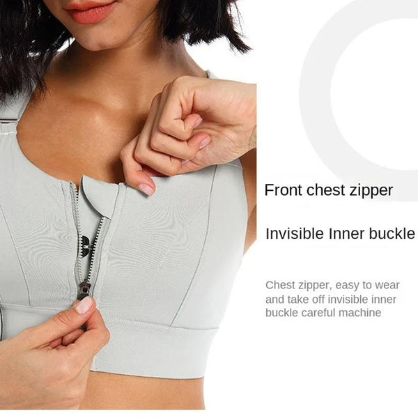 4. Women's zipper sports bra includes front hidden hook and eye closure and zipper protector to prevent chafing during wearing