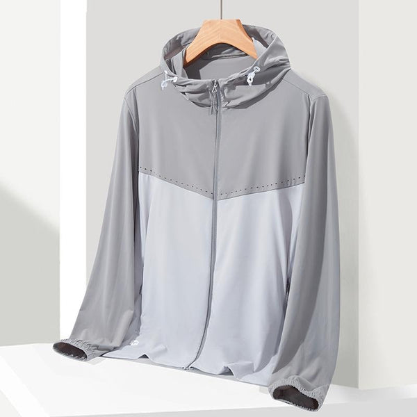 UPF40+ Men and Women Summer High Elasticity Ice Silk Sunscreen Clothing Sports Coat, Size:XL(Grey-Male)