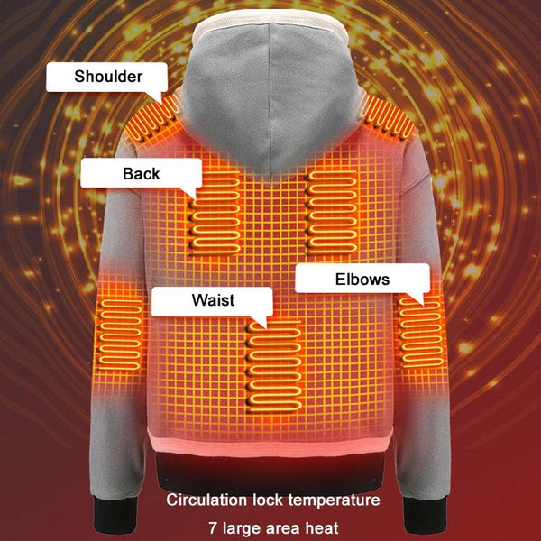 USB Smart Electric Heating Warming Thickened Hooded Sweatshirt, Size: XL(Black)