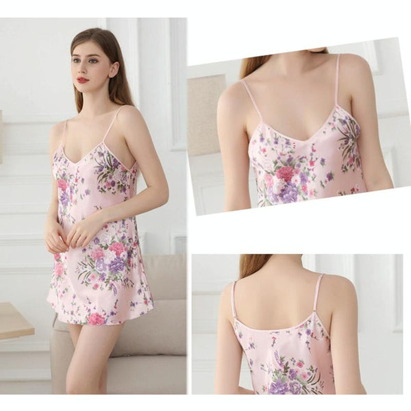 V-neck Backless Daffodils Short Sling Nightdress, Size:S(Red)