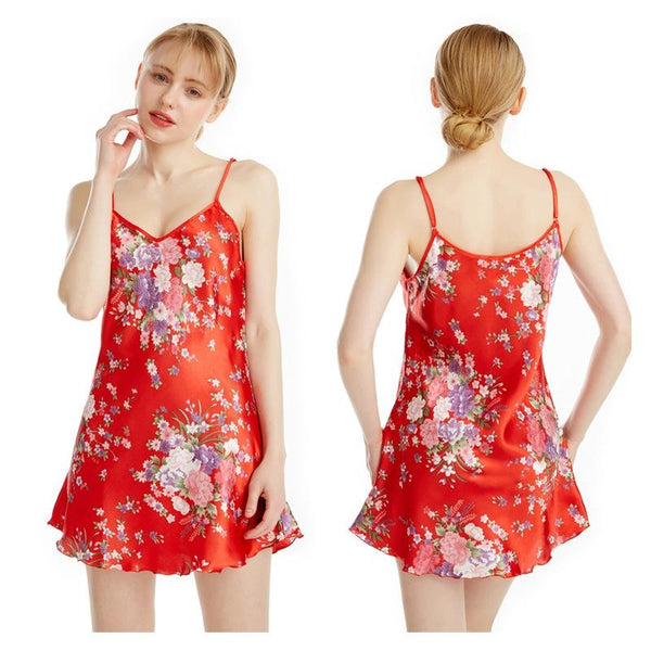 V-neck Backless Daffodils Short Sling Nightdress, Size:XL(Red)
