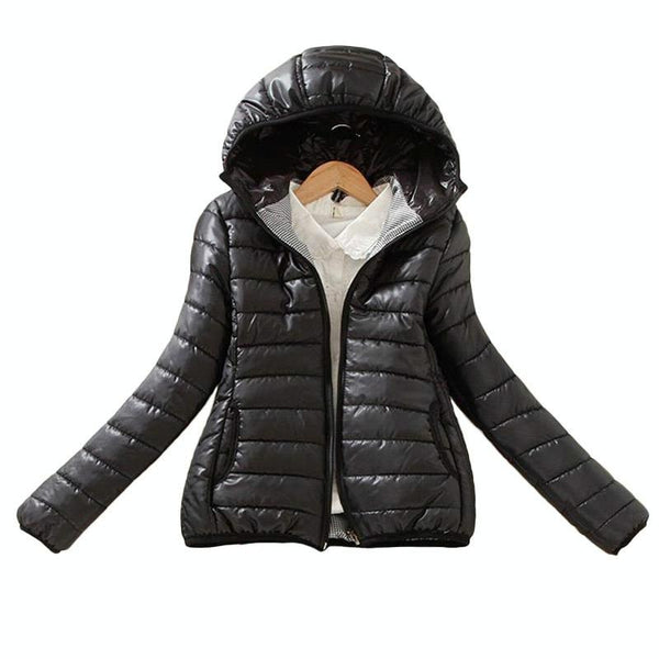 Warm Winter Parka Jacket Ladies Women Slim Short Coat, Size:XXL(Black)