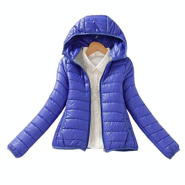 Warm Winter Parka Jacket Ladies Women Slim Short Coat, Size:XXL(Blue)