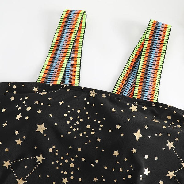 Woman Sexy Star Gilding One Piece Bikini Swimsuit, Size:L(Black)
