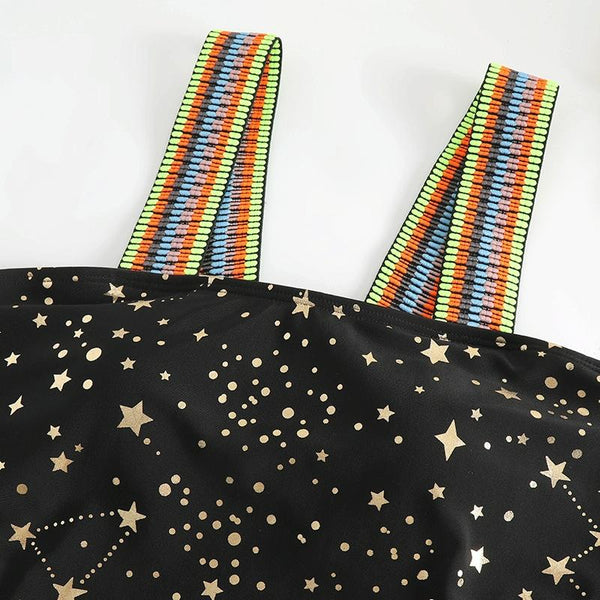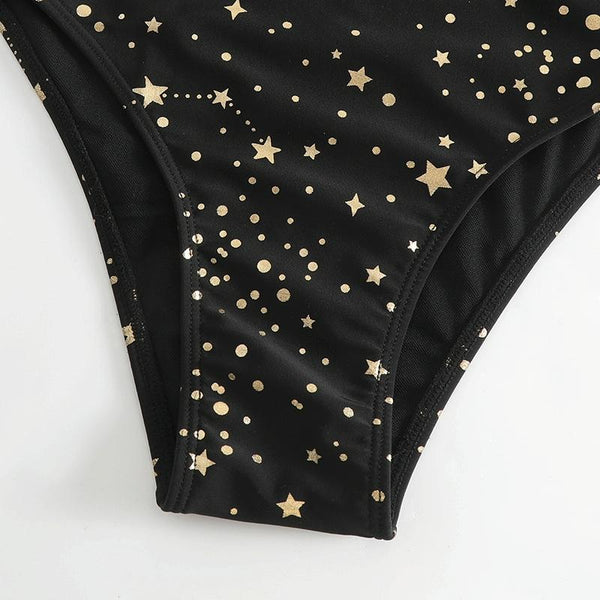 Woman Sexy Star Gilding One Piece Bikini Swimsuit, Size:M(Black)