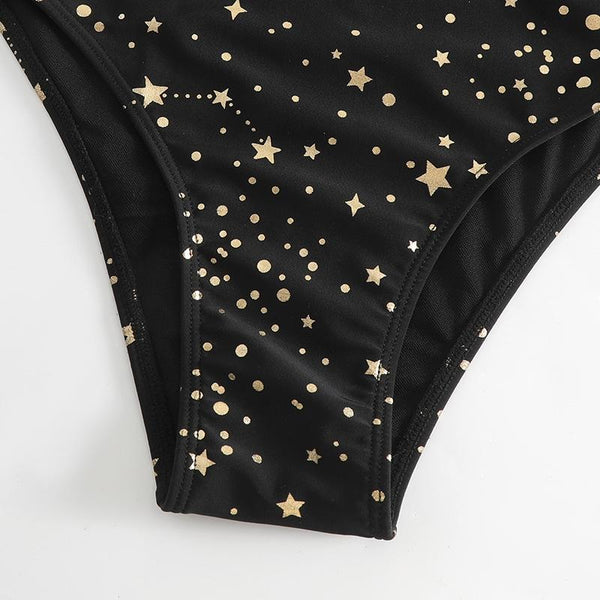 Woman Sexy Star Gilding One Piece Bikini Swimsuit, Size:S(Black)