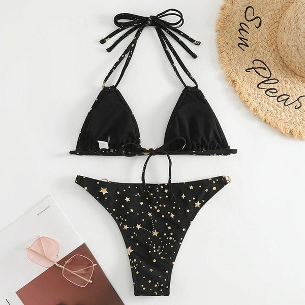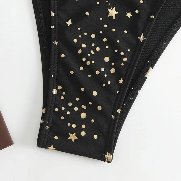 Woman Sexy Star Gilding Two Piece Bikini Swimsuit, Size:M(Black)