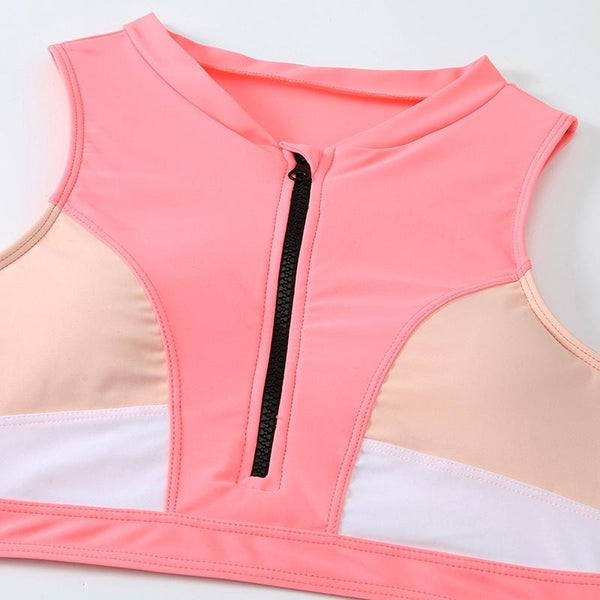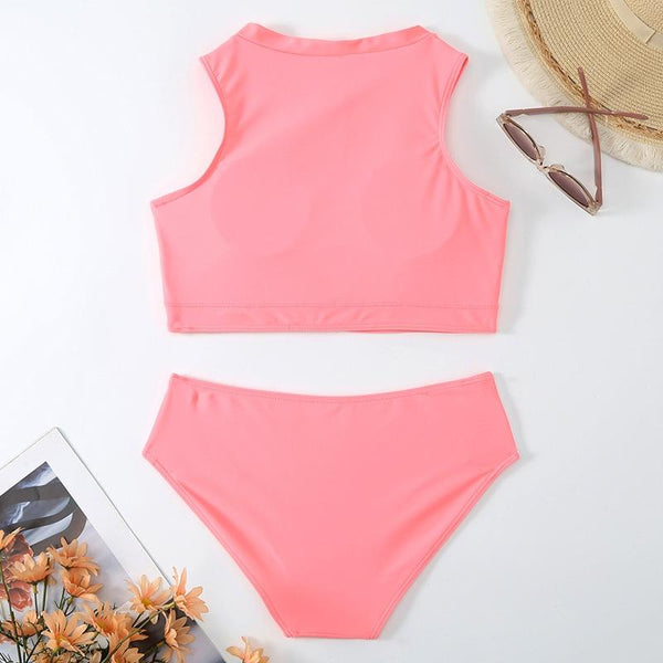 Woman Sexy Vest High Waist Two Piece Bikini Swimsuit, Size:XL(Pink)