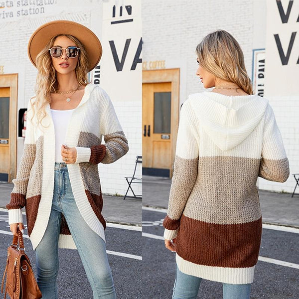 Women Casual Mid-Length Hooded Knit Cardigan Jacket, Size: L(Green)