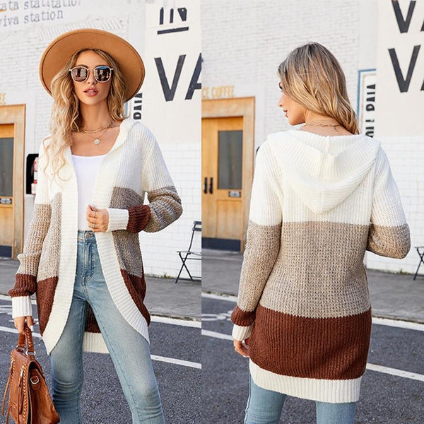 Women Casual Mid-Length Hooded Knit Cardigan Jacket, Size: XL(Green)
