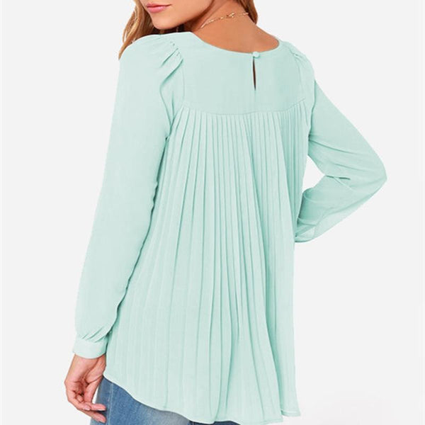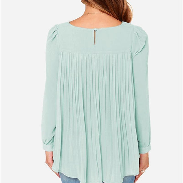 Women Chiffon Shirt Round Neck Long-Sleeved Slim Shirt, Size: XL(Light Green)