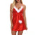 Women Christmas Oil Glossy Cloth Pajamas Deep V-Neck Lace Plush Pajamas, Size: L(Red)