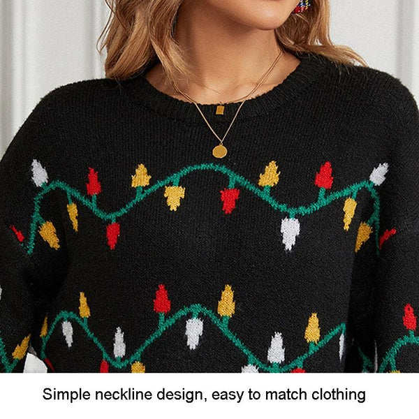 Women Christmas Sweater Sweet Loose Pullover Knit Sweater, Size: M(Black)