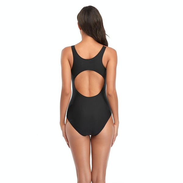 Women Comfortable Triangle One-Piece Swimsuit With Chest Pad, Size: XL(Black+white)