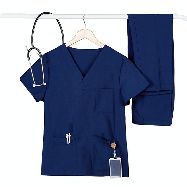 Women Grooming Pet Dental Work Clothes Short-Sleeved Top + Pants Set, Size: L(Tibetan Blue)