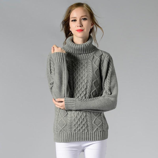 Women High Neck Knitted Sweater Long Sleeve Stranded Flower Bottoming Sweater, Size: L(Gray)