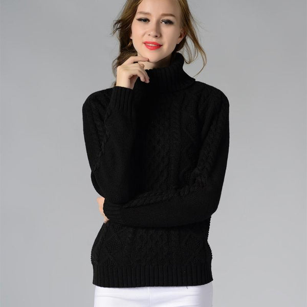 Women High Neck Knitted Sweater Long Sleeve Stranded Flower Bottoming Sweater, Size: M(Black)