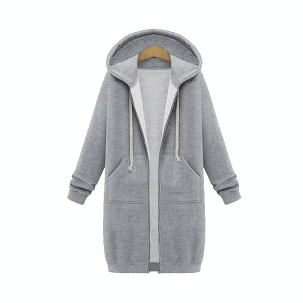Women Hooded Long Sleeved Sweater In The Long Coat, Size:L(Light Grey)