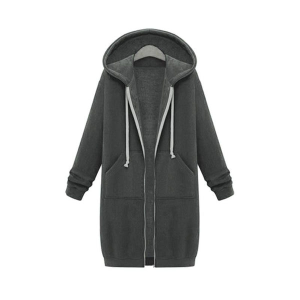 Women Hooded Long Sleeved Sweater In The Long Coat, Size:M(Dark Grey)
