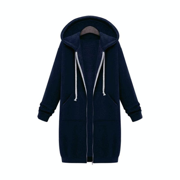 Women Hooded Long Sleeved Sweater In The Long Coat, Size:M(Navy Blue)