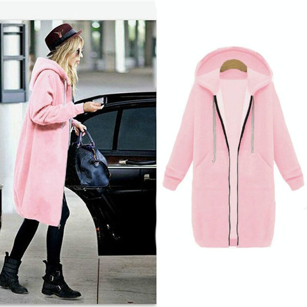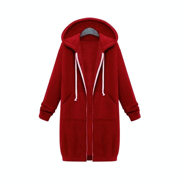 Women Hooded Long Sleeved Sweater In The Long Coat, Size:M(Red)