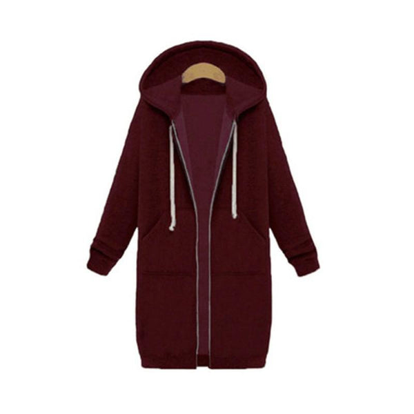 Women Hooded Long Sleeved Sweater In The Long Coat, Size:XL(Wine Red)