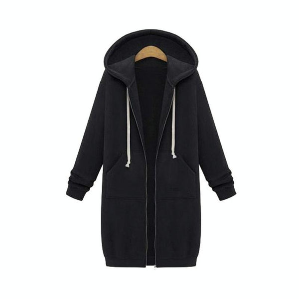 Women Hooded Long Sleeved Sweater In The Long Coat, Size:XXL(Black)