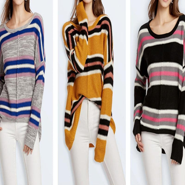 Women Knitwear Turtleneck Sweater, Size: L(Black Powder Stripes)