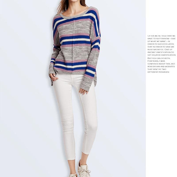 Women Knitwear Turtleneck Sweater, Size: M(Grey Blue Stripes)