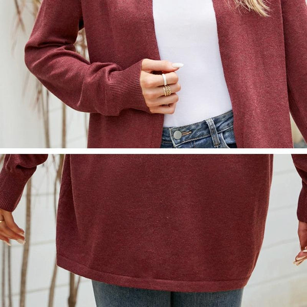 Women Mid-length Sweater Jacket Temperament Loose Knitted Cardigan, Size: L(Wine Red)