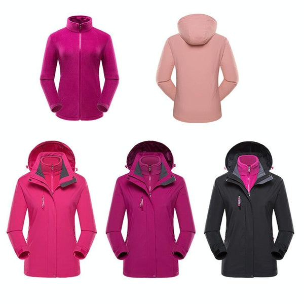 Women Outdoor Waterproof Jacket With Detachable Inner Warm Fleece for Camping Travel, Size: L(Black)