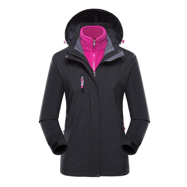 Women Outdoor Waterproof Jacket With Detachable Inner Warm Fleece for Camping Travel, Size: XL(Black)