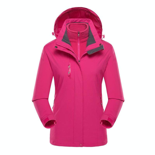Women Outdoor Waterproof Jacket With Detachable Inner Warm Fleece for Camping Travel, Size: XXXXXL(Rose Red)