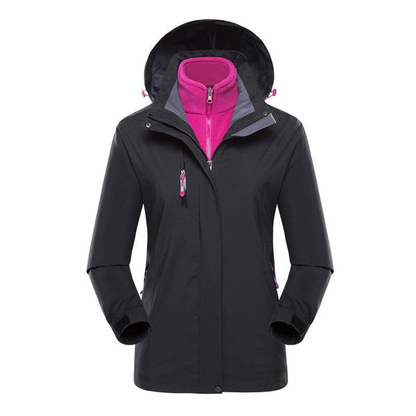 Women Outdoor Waterproof Jacket With Detachable Inner Warm Fleece for Camping Travel, Size: XXXXXXL(Black)
