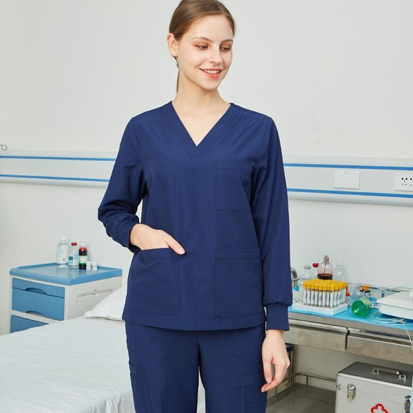 Women Scrub Pet Dental Work Clothes Long-sleeved Top + Pants Set, Size: XXXL(Tibetan Blue)
