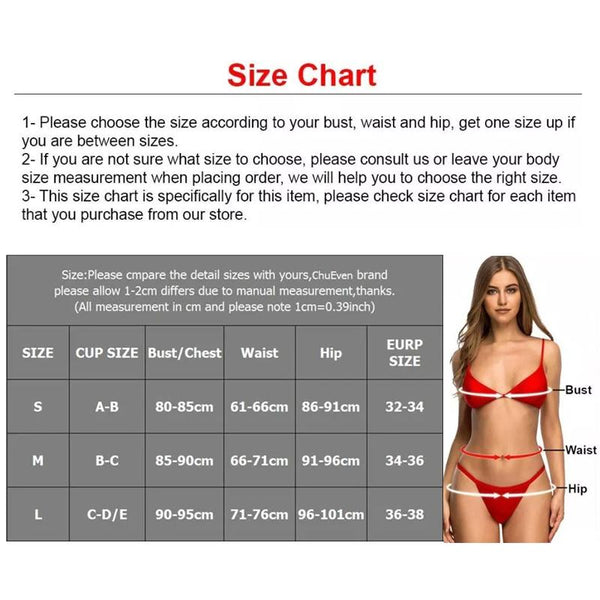 6. Care Instructions: To maintain fabric quality, hand wash in cold water and avoid tumble drying. This will help maintain the stretch and color of your bikini set.
