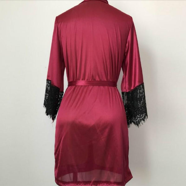 Women Sexy Silk Dressing Lace Bathrobe Pajamas, Size:M (White)