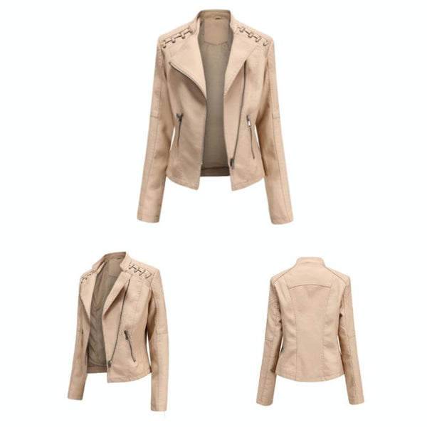 Women Short Leather Jacket Slim Jacket Motorcycle Suit, Size: S(Navy)