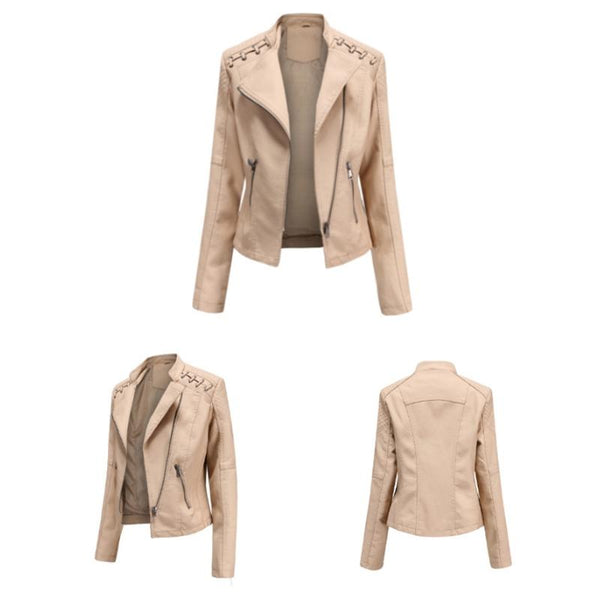 Women Short Leather Jacket Slim Jacket Motorcycle Suit, Size: S(Pale Lisianthus)