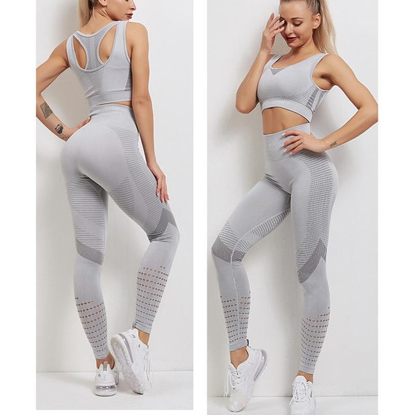 Women Sports Bra and Leggings Two-Piece Set Yoga Wear Fitness Set, Size: S(Gray)