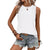 Women Spring Summer Round Neck Printed Vest T-Shirt Top, Size: S(White)