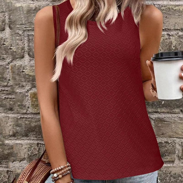 Women Spring Summer Round Neck Printed Vest T-Shirt Top, Size: S(Wine Red)