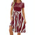 Women Spring Summer Round Neck Splicing Printed Short Sleeve Big Hem Dress, Size: L(Wine Red)