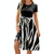 Women Spring Summer Round Neck Splicing Printed Short Sleeve Big Hem Dress, Size: M(Black)