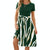 Women Spring Summer Round Neck Splicing Printed Short Sleeve Big Hem Dress, Size: S(Dark Green)