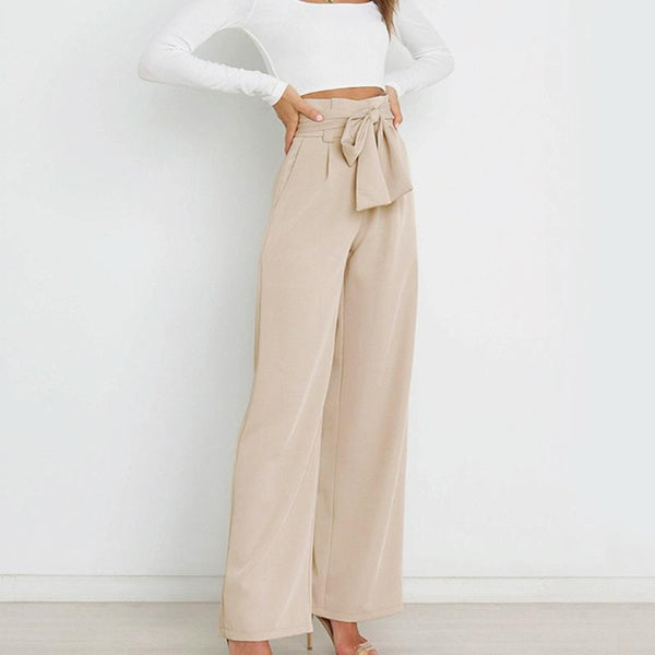Women Suit Trousers Casual Versatile Wide Leg Trousers Temperament Commuter Pants, Size: L(Apricot)