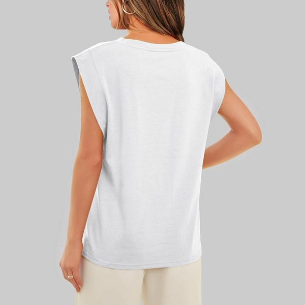 1. Loose fit vest, emphasizing simplicity, with short sleeves and round neckline, creating a classic and timeless style.