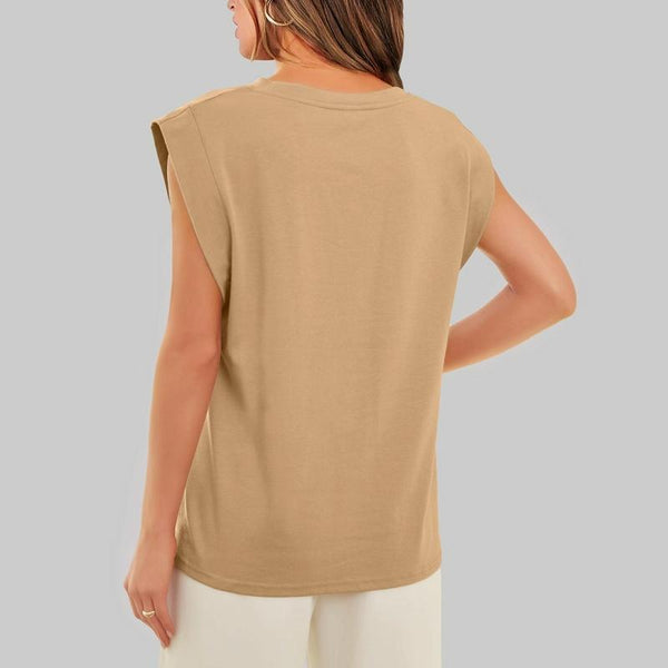 1. Loose fit vest, emphasizing simplicity, with short sleeves and round neckline, creating a classic and timeless style.