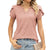 Women V-Neck Button Hollow Loose Short Sleeve T-Shirt Blouse, Size: L(Pink)